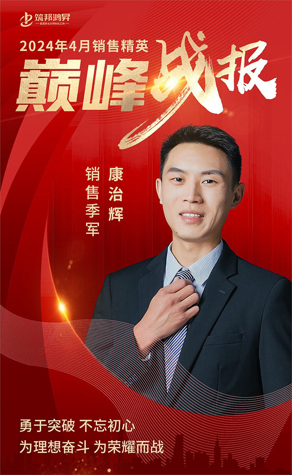 4月份,筑邦鴻昇又迎來(lái)了一場(chǎng)銷(xiāo)售的盛宴,我們的銷(xiāo)售團(tuán)隊(duì)在過(guò)去的4月份再次創(chuàng)造了輝煌,讓我們一同為銷(xiāo)售部精英取得的杰出成績(jī)喝彩。值此良機(jī),我們向大家介紹我們銷(xiāo)售部4月銷(xiāo)售業(yè)界的前三甲——冠軍康納輝、亞軍王修寧和季軍康治輝,他們的奮斗和成就展示了我們企業(yè)全心全意服務(wù)客戶的承諾和精神,同時(shí)也是我們?nèi)w銷(xiāo)售部成員的榜樣和鼓舞!