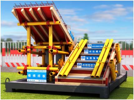 工藝展示:雙鋼管固定、對(duì)拉螺桿、樓梯支模體系、樓梯施工縫留設(shè)1/3處、施工縫鑿毛、清掃口、支撐模剪刀撐、梯板鋼筋綁扎、混凝土成品展示、樓梯模板卡槽式支護(hù)與加固等工藝。