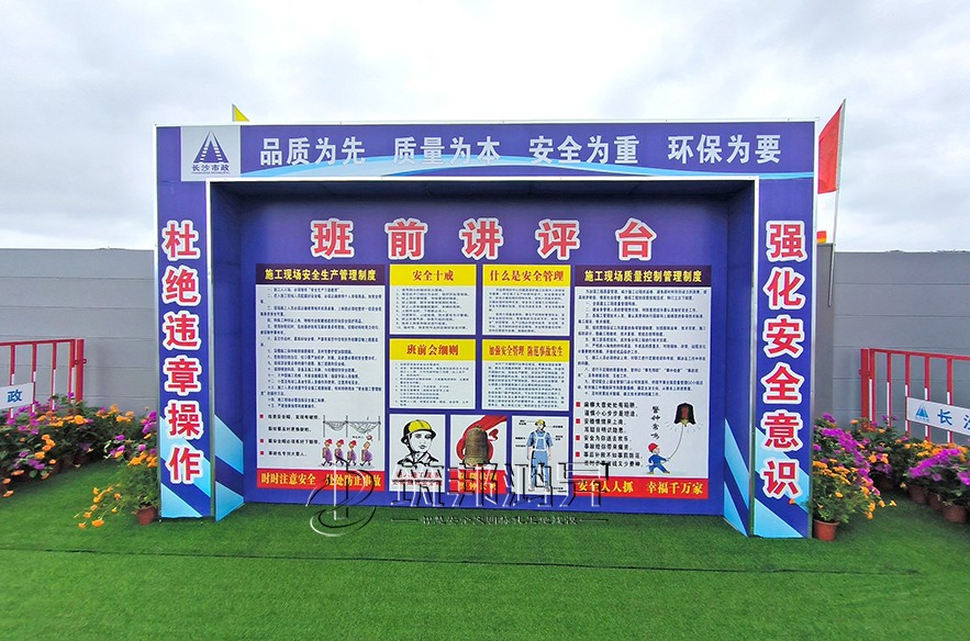 6月21日,2022年長沙市建筑工程質(zhì)量管理和安全生產(chǎn)標準化觀摩會在長沙市市政工程承辦的靳江河西岸綜合整治工程設計施工總承包(EPC)項目舉行。筑邦鴻昇系列文明標化產(chǎn)品助力。